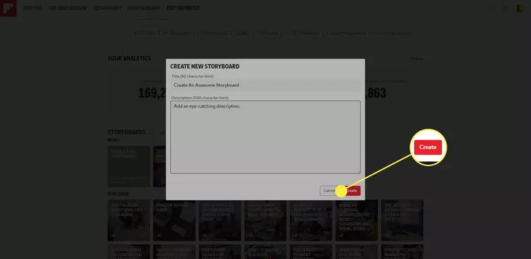 الخطوة 2: ستظهر صندوق حوار منبثق. اكتب عنوان القصة المصورة ووصفها هنا ، ثم انقر فوق إنشاء.