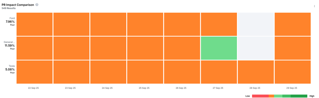 Além de avaliar seu próprio desempenho, ele ajuda as marcas a formar uma visão geral de como elas se comparam à concorrência usando métricas essenciais como Share of Voice (SOV), Sentiment Spread e Media Footprint.