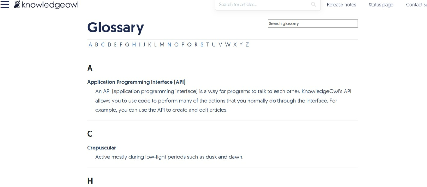 Halimbawa: Pahina ng Glossary ni Knowledgeowl