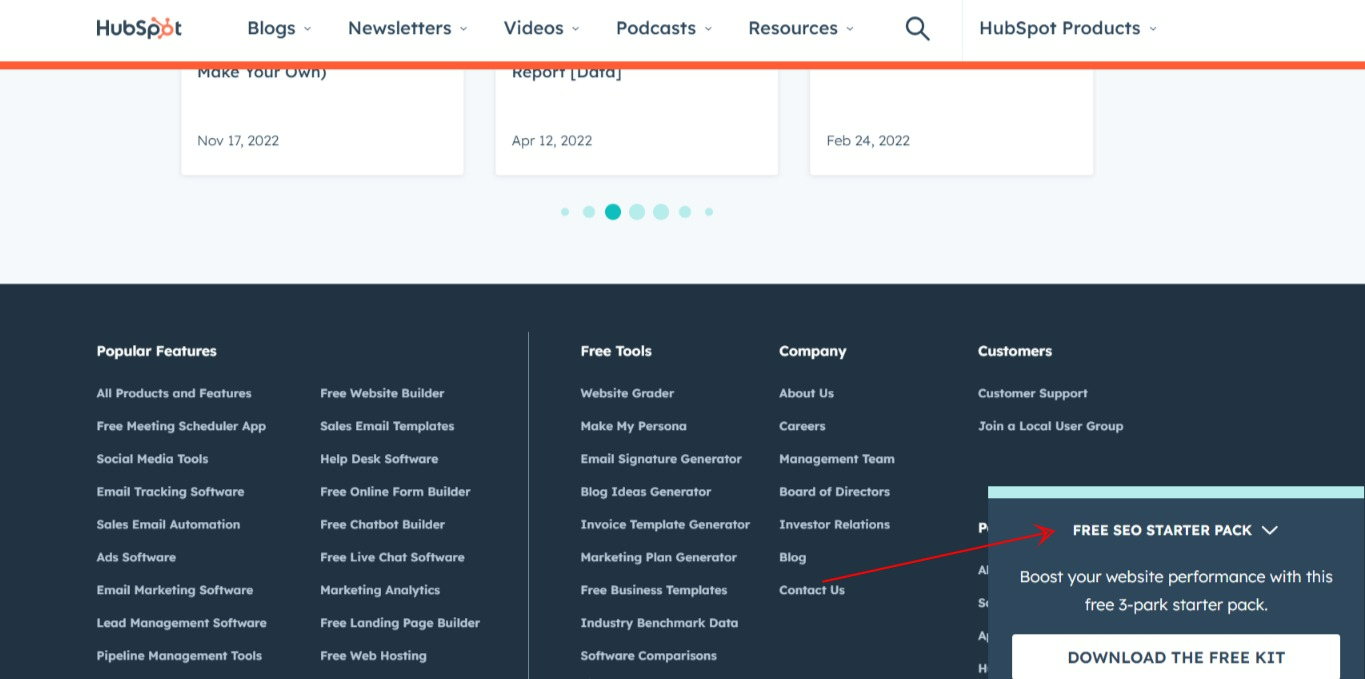 Pansinin kung paano nag -aalok ang HubSpot ng isang libreng nai -download na gabay upang matulungan ang mga nagsisimula na lumikha ng isang solidong diskarte sa SEO.